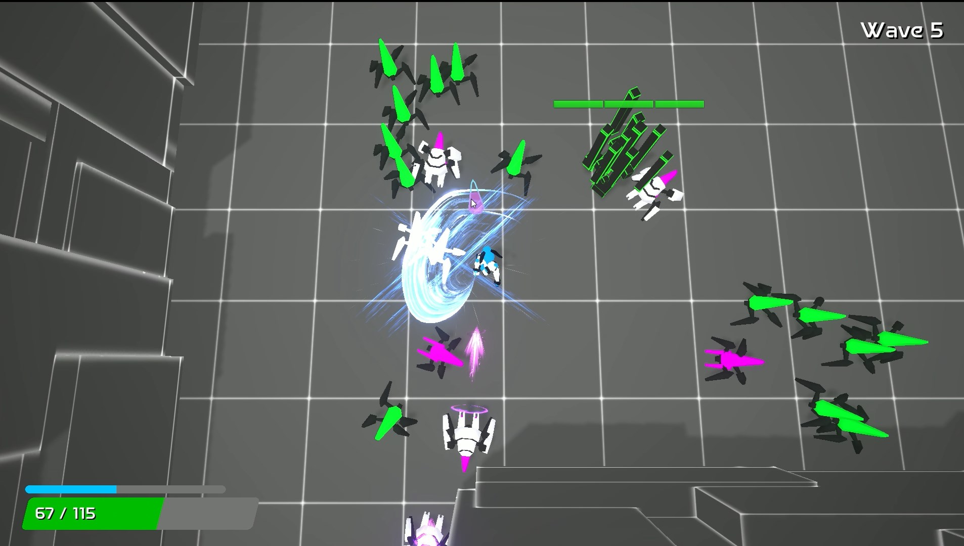 - Kill all bugs and glitches to complete the wave.